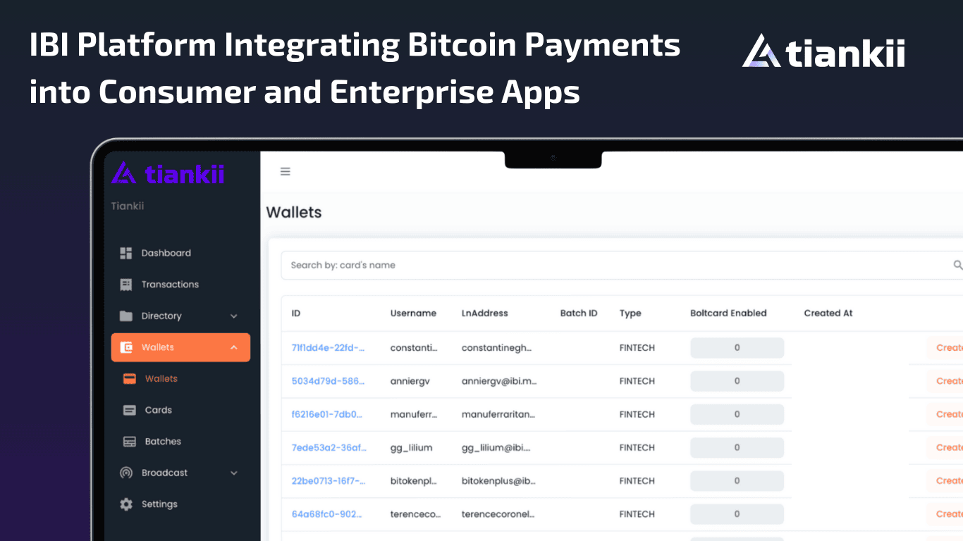 Tiankii Launches IBI: The Platform Integrating Bitcoin Payments into Consumer and Enterprise Apps